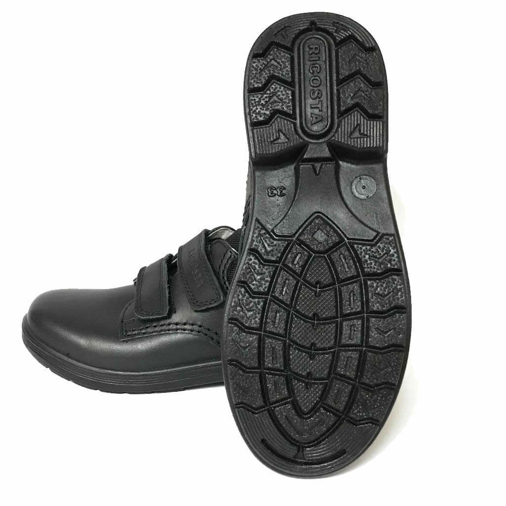 Ricosta William is a timeless, smart school shoe. Crafted with leather uppers and leather linings, these shoes are durable, stylish, and built for everyday school wear. Designed with a removable textile insole, William is suitable for orthotics, ensuring comfort and support for growing feet. The padded ankle cuff and high front create a secure, snug fit, making them ideal for active children.