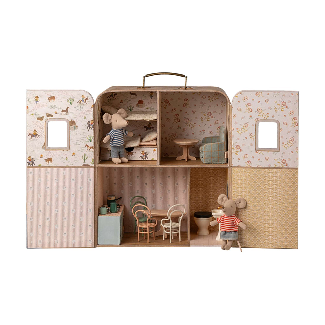 Maileg SuitCasa, a charming and portable little house designed especially for Maileg’s Little Brother and Little Sister Mice. Perfectly sized for tiny adventures, this suitcase-style home opens up to reveal a cosy space ready to be filled with love, imagination, and miniature memories.